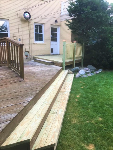 Michigan weather can do a number on your outside decking and trim. Repair pieces with life left and replace those that are worn or weathered with treated lumber.